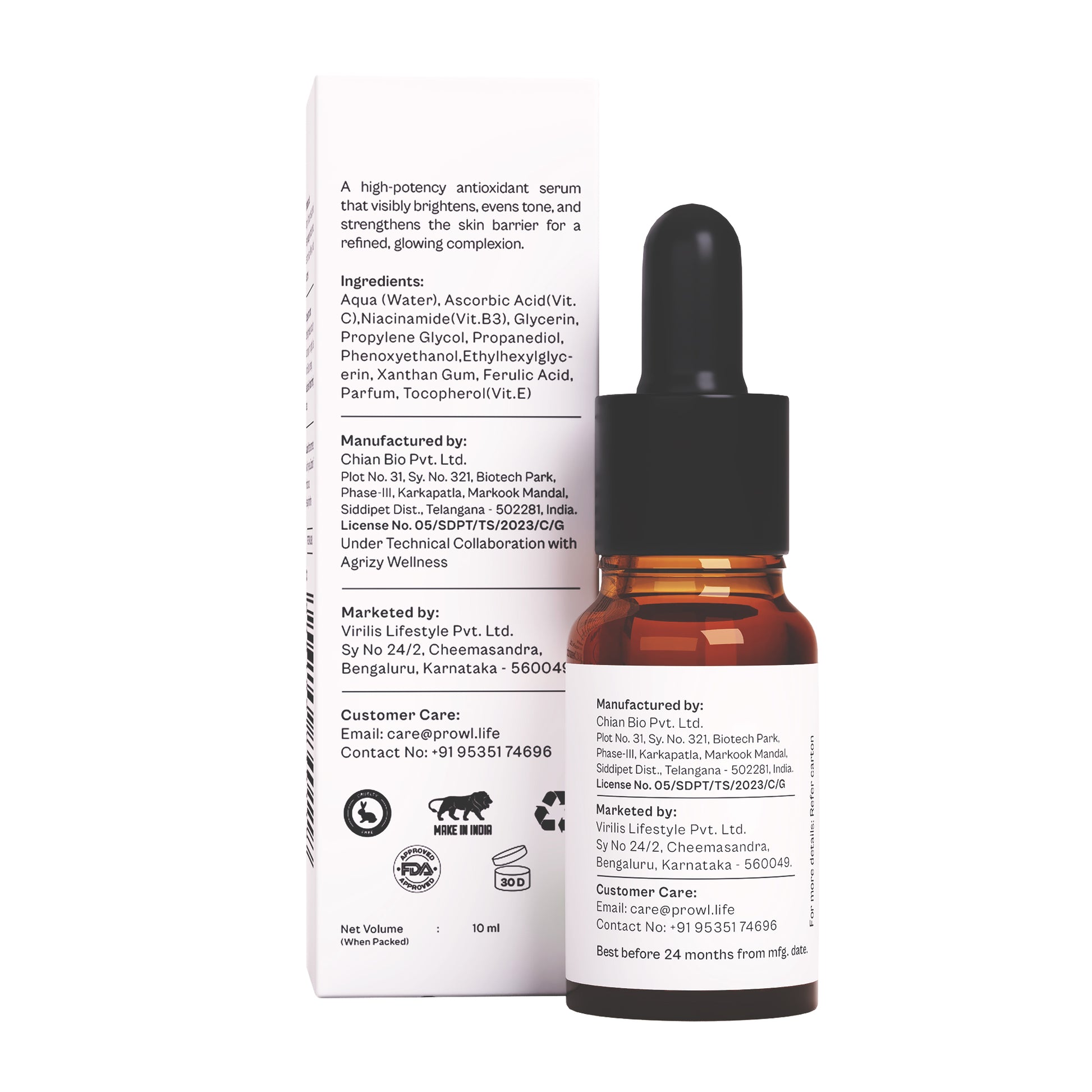 - 10% Vitamin C Serum for Glowing Skin & Face Brightening: PROWL by Tiger Shroff Vitamin C face serum is formulated with pure 10% Vitamin C to support daily brightness, improve dull skin, and promote glowing skin for men seeking effective skin care results.